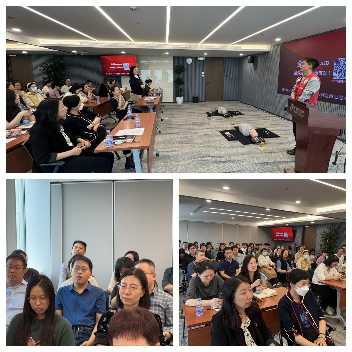 ??本次培訓采取理論教學和實操演練相結合的方式進行,邀請具有專業(yè)資質(zhì)、豐富急救知識及從業(yè)經(jīng)驗的講師進行授課。在理論教學環(huán)節(jié),培訓老師詳細講授了心肺復蘇相關理論知識,重點講解了海姆立克急救法、胸外按壓操作方法、體外自動除顫儀(AED)使用方法等應急救護原理和技術方法。在實操演練環(huán)節(jié),培訓老師利用醫(yī)用人體模型現(xiàn)場演示心肺復蘇操作流程、AED使用方法,同時對急救過程中需要注意的事項進行講解,并指導參訓人員進行實際操作。